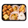 Karaage crocante com 2 acompanhamentos à sua escolha.