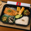Salmão grelhado, suculento e levemente temperado ao estilo oriental, acompanhado de tamagoyaki, guioza frito, harumaki de queijo, shimeji na manteiga e arroz oriental. Escolha 2 acompanhamentos para completar seu bentô.