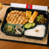 Shogayaki de frango, preparado com peito de frango grelhado ao molho de gengibre e shoyu, acompanhado de tamagoyaki, guioza frito, harumaki de queijo, shimeji na manteiga e arroz oriental. Escolha 2 acompanhamentos para finalizar seu bentô.
