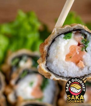 Clássico sushi empanado, recheado de salmão grelhado com cream cheese e cebolinha.