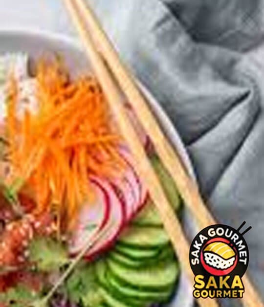 Salmão fresco cortado em cubos, servido sobre arroz oriental temperado com delicados temperos japoneses, acompanhado de cream cheese, sunomono, pedaços de tomate e cebolinha. Um prato leve, fresco e cheio de sabor, perfeito para uma refeição equilibrada e deliciosa.