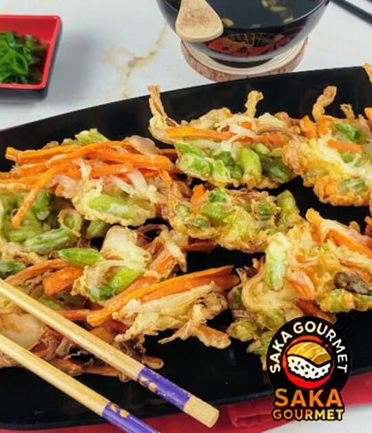 Tempurá de legumes variados, crocante e leve, preparado no estilo tradicional.